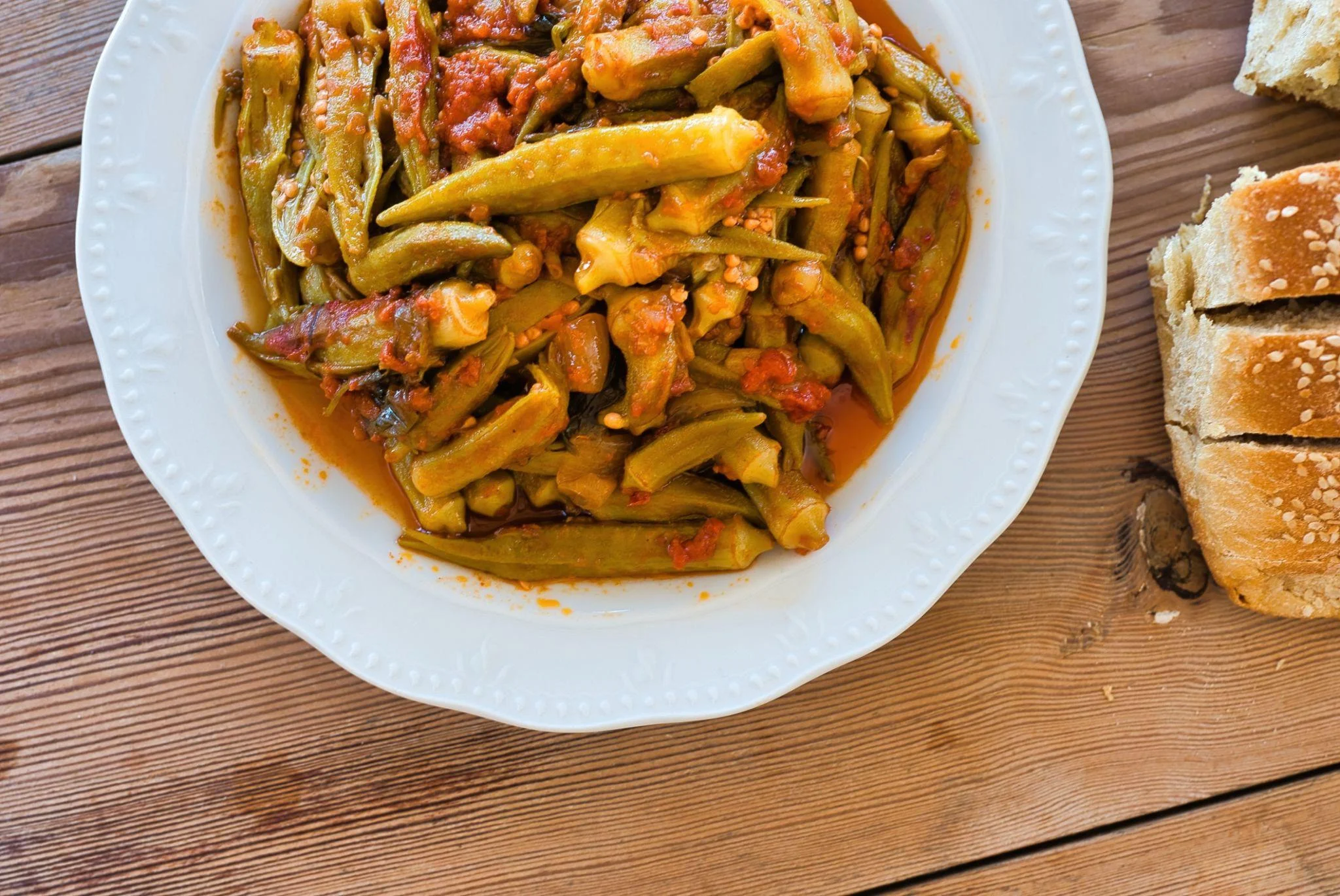 When prepared properly, okra becomes creamy and tender rather than slimy, absorbing the tomato and olive oil into every bite.